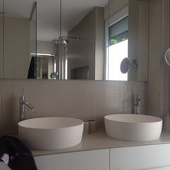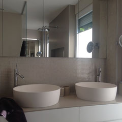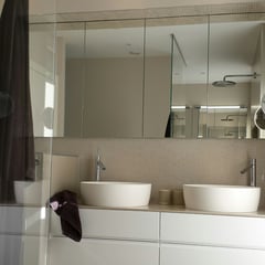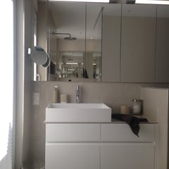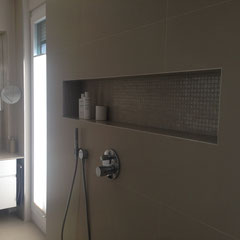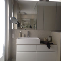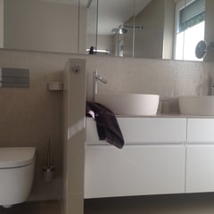 Hier lautete die Aufgabe ein bestehendes Bad in einen Kinder- und einen Elternbereich zu teilen. Die größte Herausforderung hierbei war die Aufteilung (durchgehende Fensterfront in die Wohnräumlichkeiten) und die optimale Nutzung des Raumes...