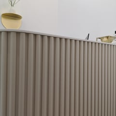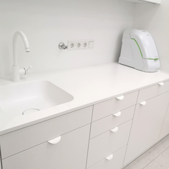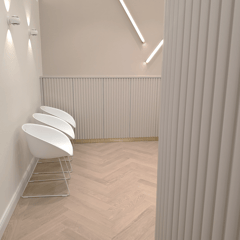 Hier waren wir in die komplette Planung eingebunden. Von der Raumaufteilung, bis zur Auswahl der Böden und Materialien konnten wir mit dem Kunden ein stimmiges Gesamtkonzept umsetzen. Highlight dieses Projektes war der helle Terrazzofußboden mit Messingkanten in Kombination mit der besonderen Oberflächengestaltung der Einbauten. Bei diesem Projekt konnten wir bis zum letzten Detail alles auf das Gesamtkonzept abstimmen.